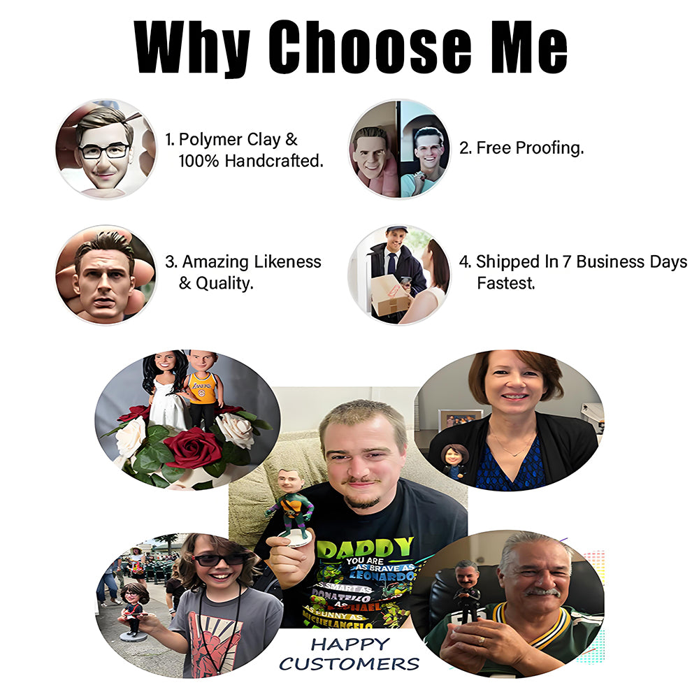 •We use polymer clay that meets the highest industry standards. it's a non-toxic. multi-color. and environmentally friendly convertible material that makes your bobblehead very alive-looking.
